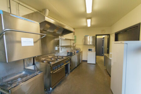 La salle est également équipée d'une cuisine professionnelle (Cuisinière, lave-vaisselles, frigo, congélateur), de vaisselle complète.