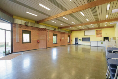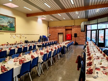 Notre salle peut accueillir maximum 120 personnes et est équipée de tables rectangulaires  de chaises et d’un bar avec pompe à bières.