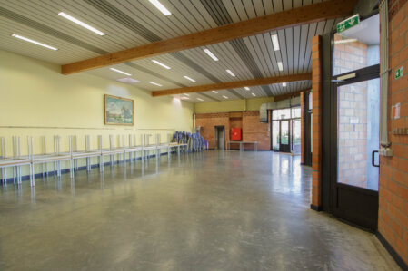 Notre salle peut accueillir maximum 120 personnes et est équipée de tables rectangulaires  de chaises et d’un bar avec pompe à bières.